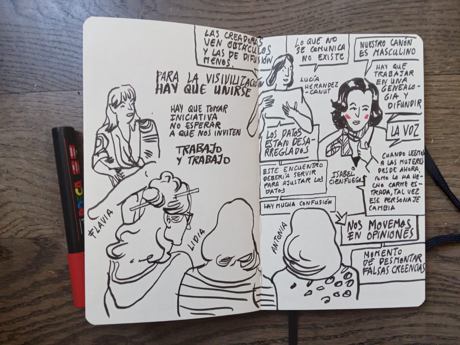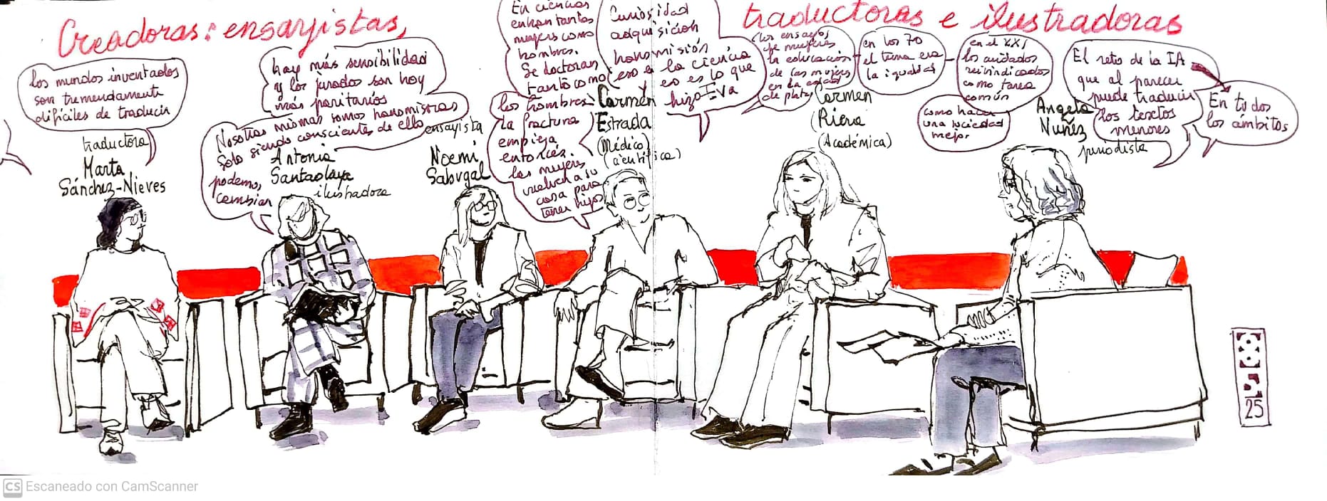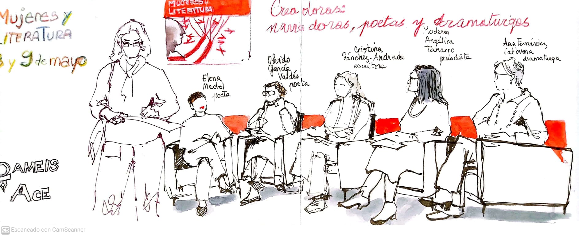 Te mostramos las ilustraciones que realizaron las artistas Lydia Puertas, Antonia Santaolaya y Flavia Totoro durante el I Encuentro Estatal Mujeres y Literatura, así como una selección de fotos de Eduardo Cano (Ático26-Estudio de fotografía).