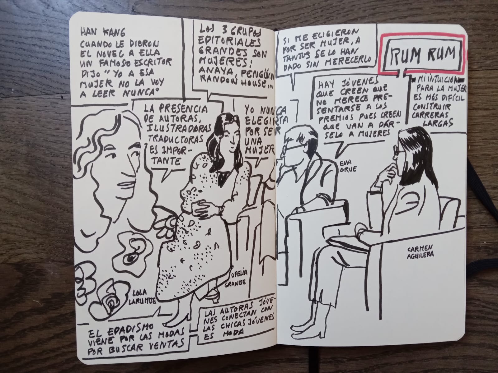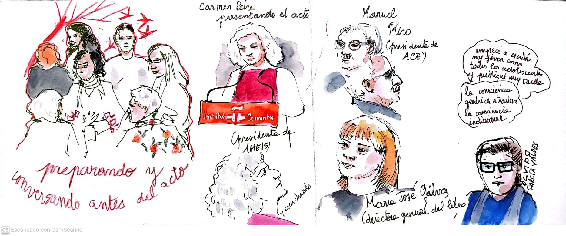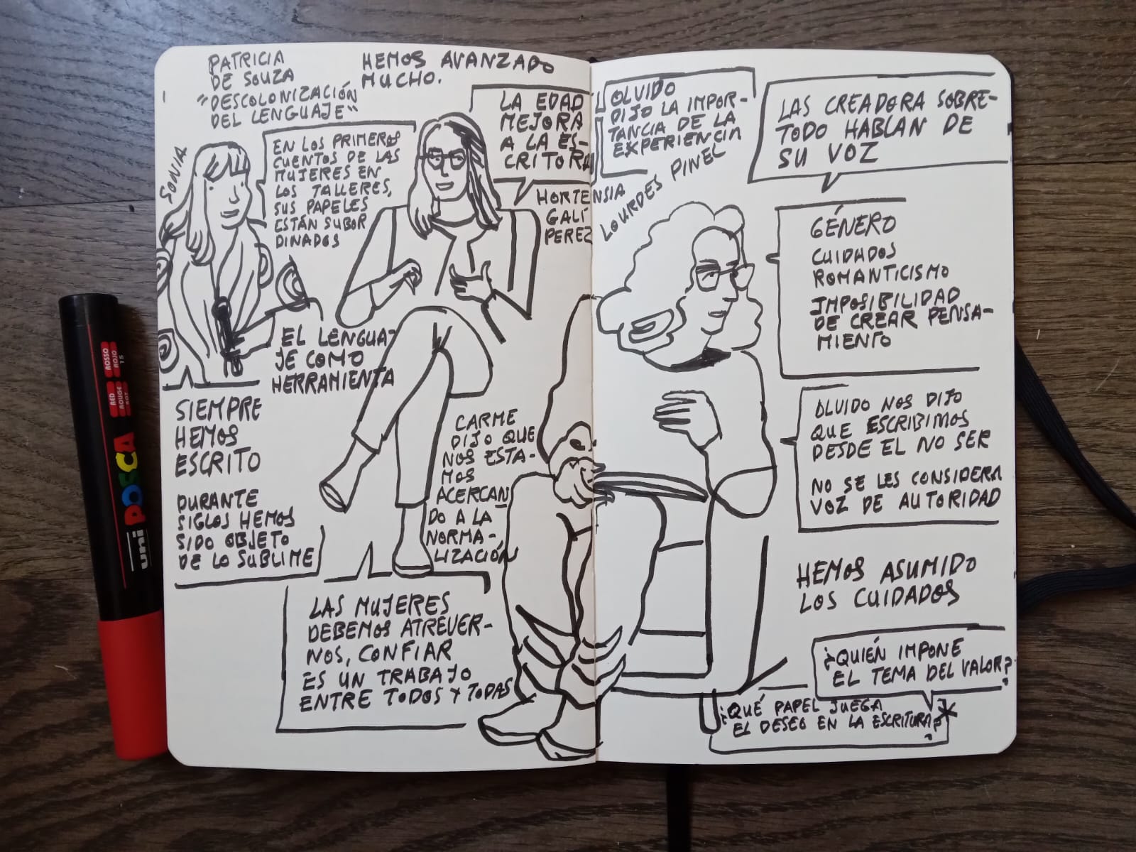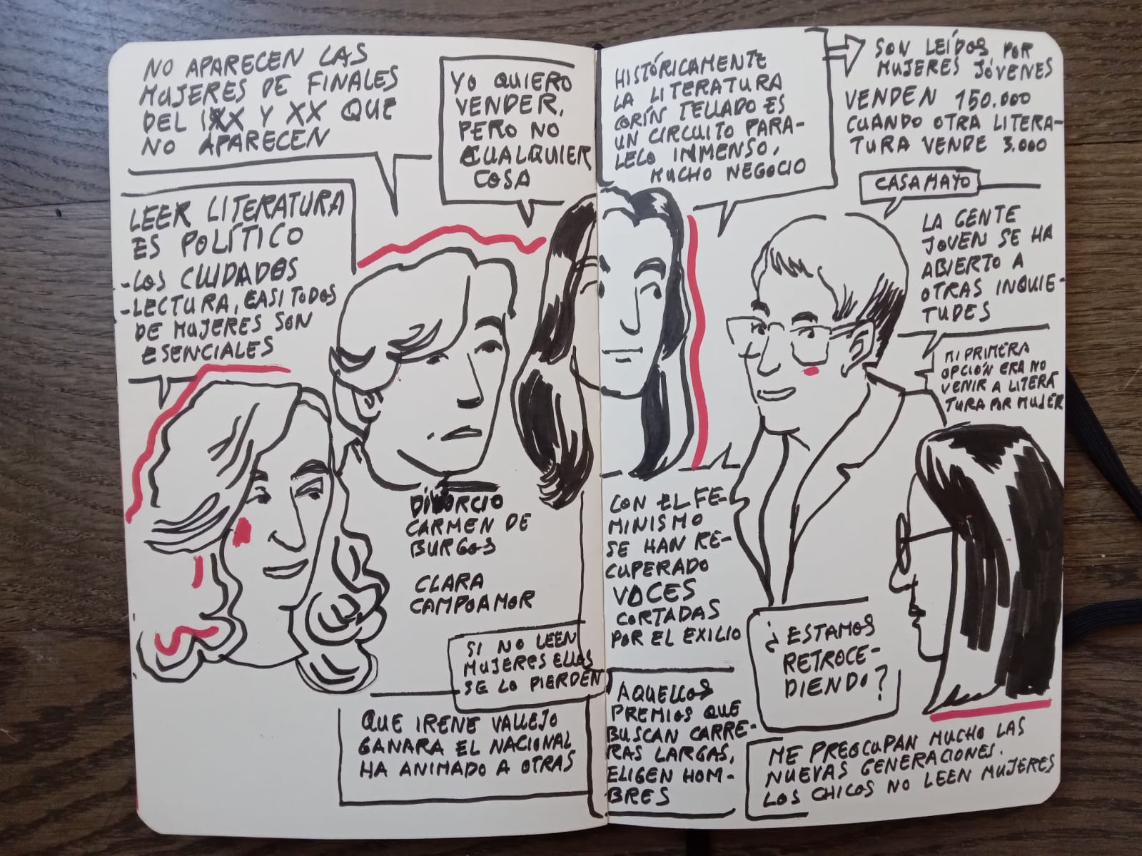 Te mostramos las ilustraciones que realizaron las artistas Lydia Puertas, Antonia Santaolaya y Flavia Totoro durante el I Encuentro Estatal Mujeres y Literatura, así como una selección de fotos de Eduardo Cano (Ático26-Estudio de fotografía).